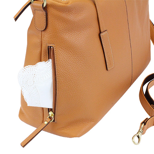 マットな落ち着いた表面は、革素材独特のシボが美しく出ており、一つ一つのバッグごとにそれぞれの味を持った仕上がりになっています。