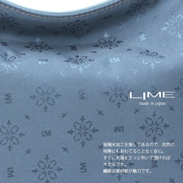 メインのポリエステル素材はライムオリジナルのLM柄をジャガード織で再現したオリジナル素材。