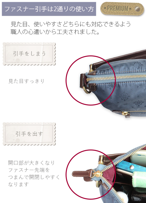 斜めがけショルダー、ハンドバッグと用途に合わせたスタイルでお使い頂けます。