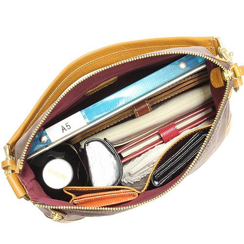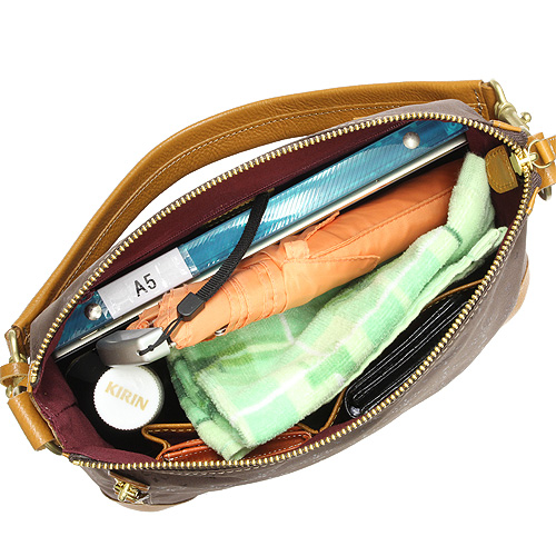 2wayタイプで、ショルダー持ち手共に取り外しのできるA5サイズ収納のショルダーバッグです。