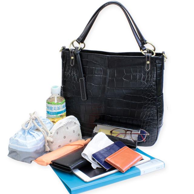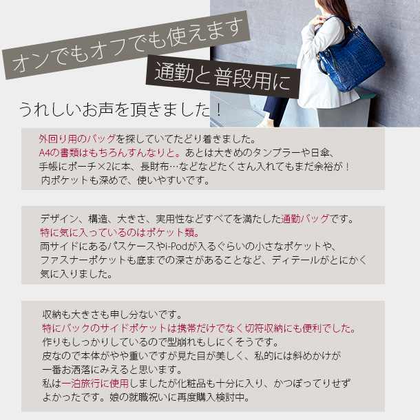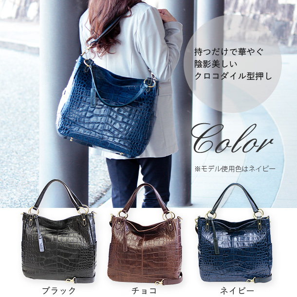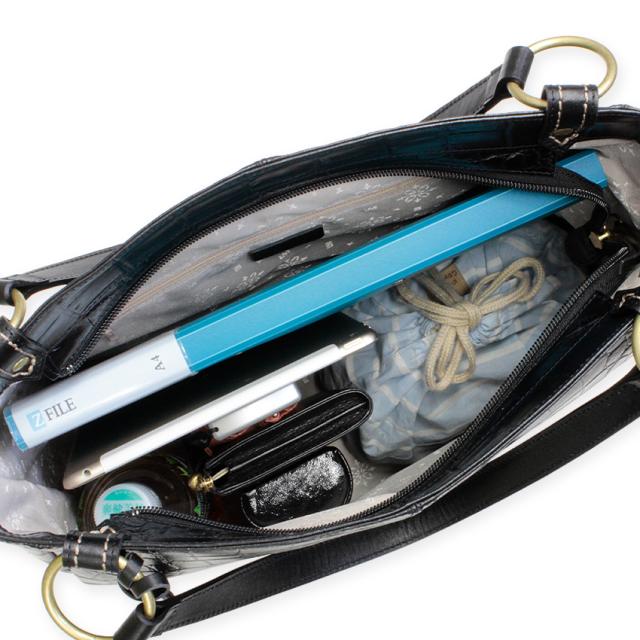 お声を形に。華やかで美しいクロコ型押しの陰影が女性らしさを高める人気の2wayタイプA4トートバッグが内装を一新、上品なジャガード生地に仕様変更し復刻致しました。