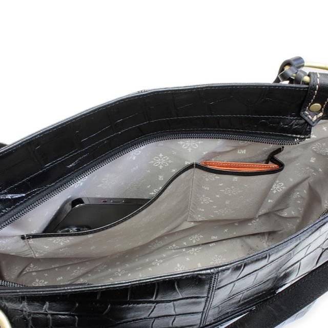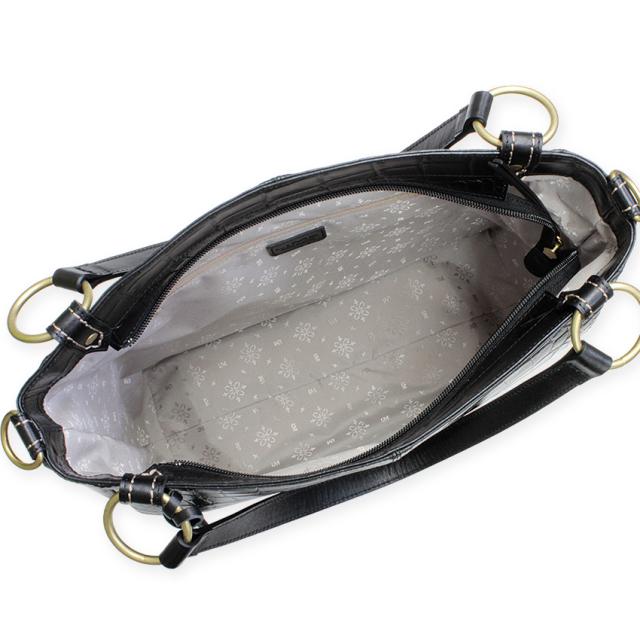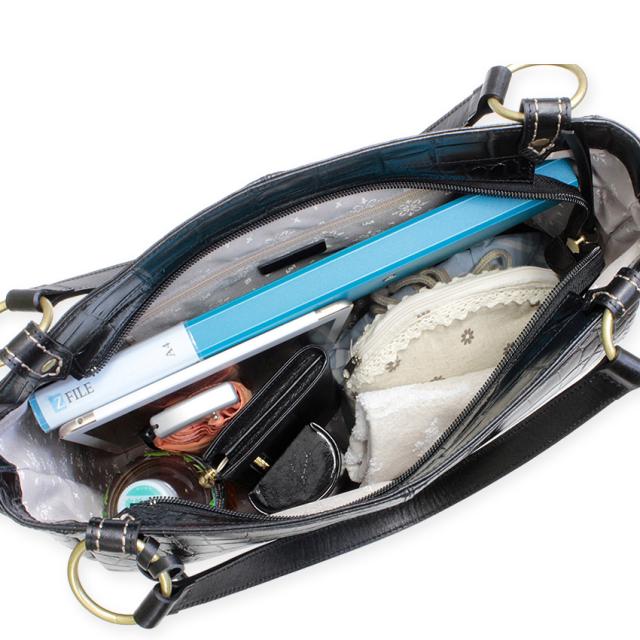 華やかで美しいクロコ型押しの陰影が女性らしさを高める人気の2wayタイプA4トートバッグが内装を一新、上品なジャガード生地に仕様変更し復刻致しました。