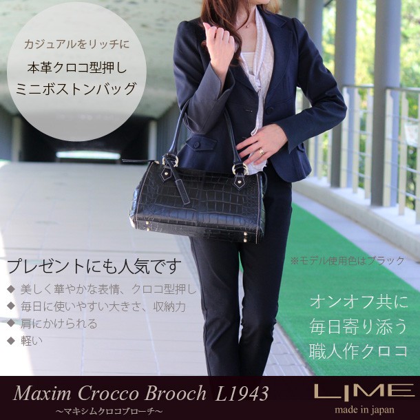 ハンドバッグ レディース 本革 ミニトート バッグ ミニボストン トート 大人 おしゃれ オシャレ きれい 高級 クロコ 型押し バッグ 革 レザー 通勤 通学 ビジネス ライム マキシムクロコブローチL1943 母の日 誕生日 プレゼント ギフト 御祝 ブランド 上品 クリスマス