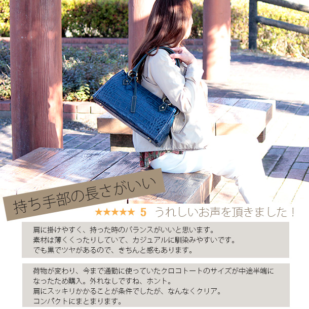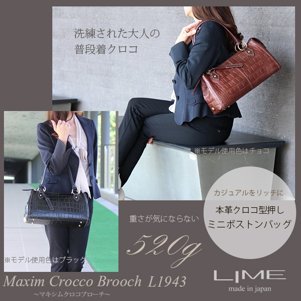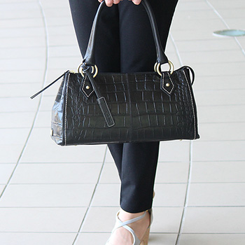 抑え気味のツヤ感が上品な人気のクロコダイル型押しミニボストン、お声を形に内装をより上品に仕様変更し、さらに軽量になって再登場!
