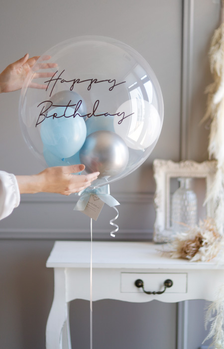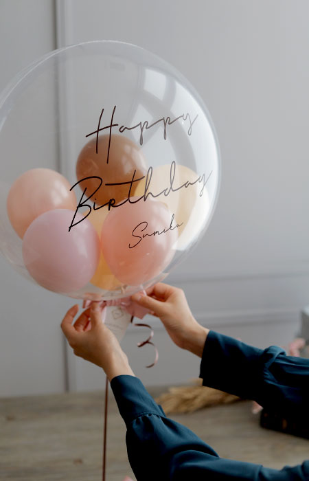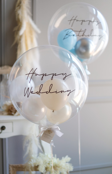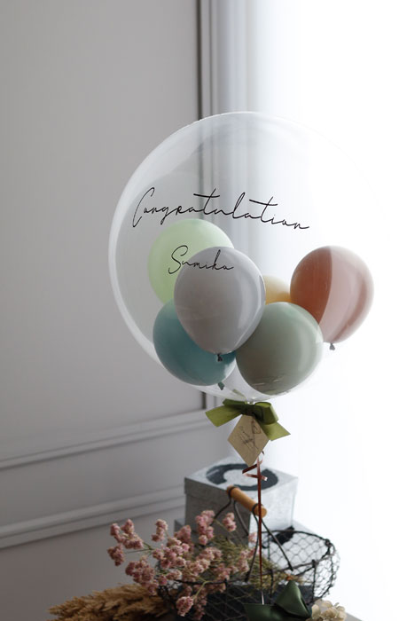 「結婚祝い」「お誕生日」「出産祝い」「開店祝い」の電報バルーンとして、透明バルーンブーケを贈りませんか?