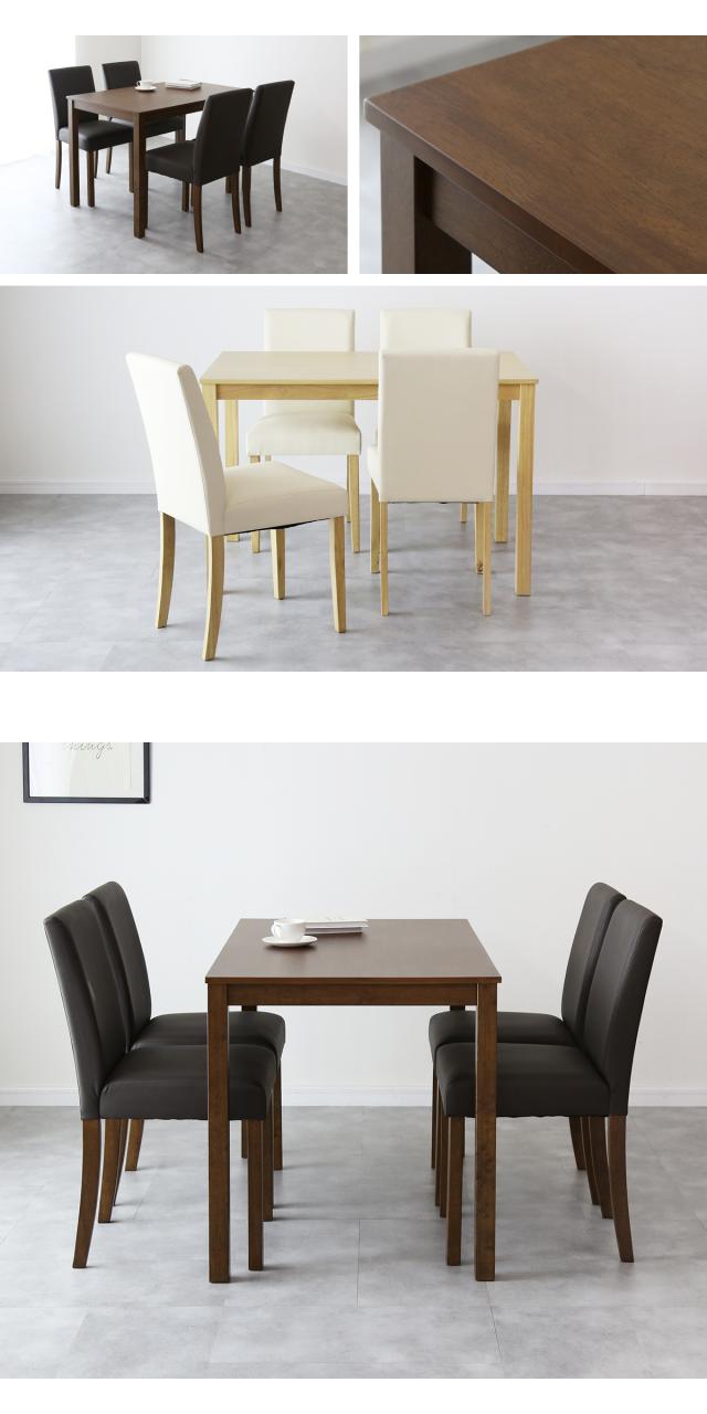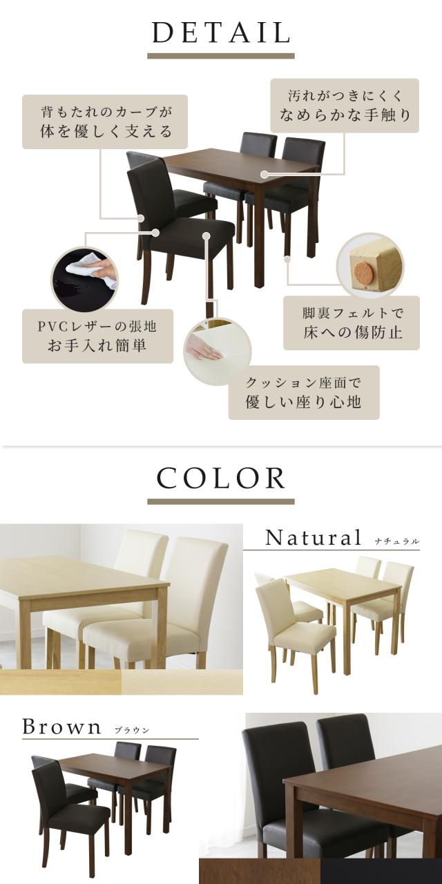 天板:MDF・ラバーウッド突板 脚:天然木 チェア:ウレタンフォーム・合成皮革