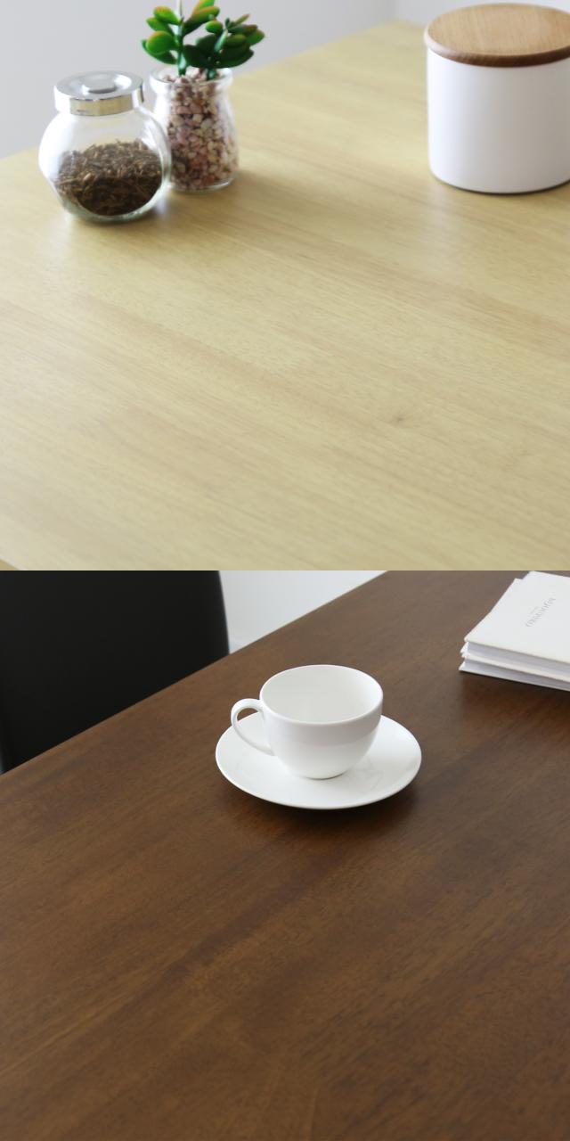 テーブルの表面にはラッカー加工を施しています。この加工により木の質感を残しながら表面がなめらかで柔らかい光沢感のある天板に仕上がっています。傷や汚れがつきにくくお手入れも簡単で、日々の生活にも寄り添ったダイニングテーブルです。