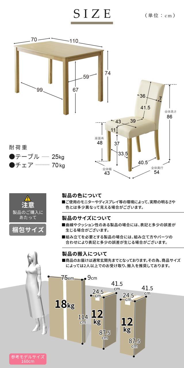 テーブル:幅110×奥行70×高さ74(cm) チェア:幅43×奥行54×高さ86×座面高48(cm)