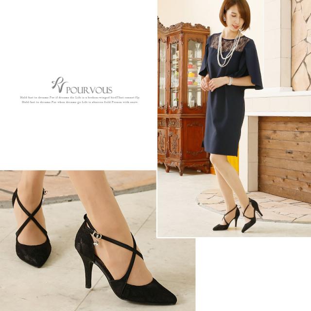 クロスベルトレースパンプス【s040】20代・30代・40代・50代パーティーシューズ・痛くないパンプス・ピンヒール・ヒール・ラメ・ビジュー・リボン・レース・花柄・ラインストーン・デザインヒール・サテン・ストラップ・フォーマル・小さいサイズ・大きいサイズなど・即日発送・送料無料・結婚式・婚活・披露宴・顔合わせ・二次会・同窓会・お呼ばれ・食事会・謝恩会・親族・七五三・お宮参り・冠婚葬祭・弔事・女子会・デート・入学式・卒業式・入園式・卒園式・ママ・マタニティー・セレモニー・セレブ・パーティー