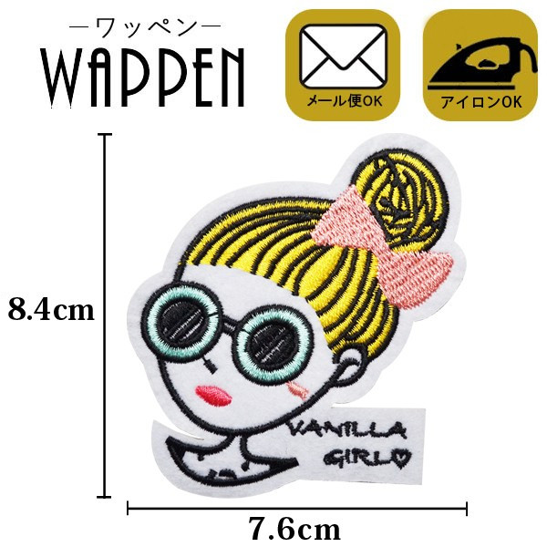 ワッペン アップリケ スパンコールワッペン 縦8.4cm×横7.1cm (小)ガール 女の子 眼鏡 サングラス 手芸母の日 プレゼント ギフト