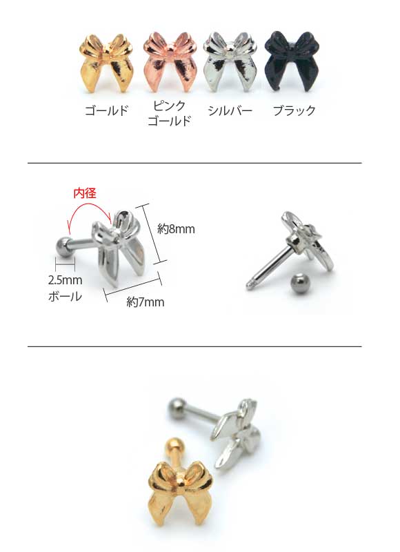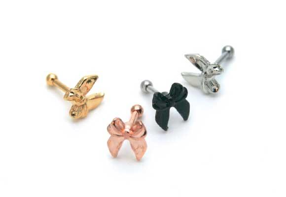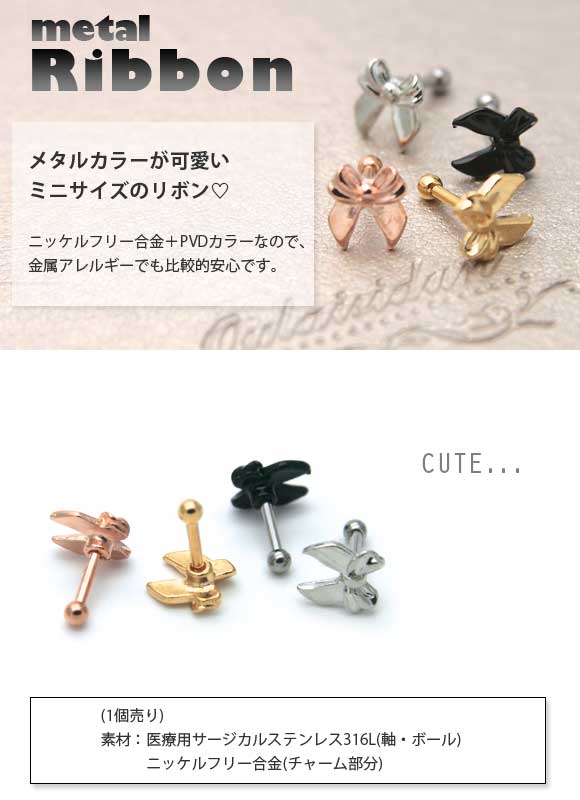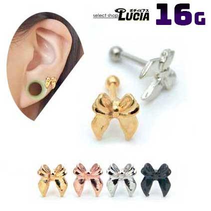 本日P2倍 16G ピアス ボディピアス ストレートバーベル メタル リボン 可愛い 金属アレルギー対応 316L 高品質 ステンレス 軟骨ピアス