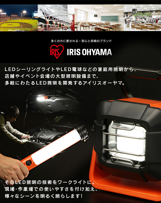 車の整備や天井・床下などの作業、アウトドアに最適!雨天でも気にせずに使用できる防水規格IP55で、屋外の作業にもおすすめ。