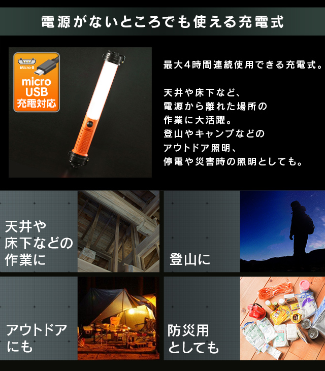 LEDスティックライト 300lm 充電式 防災 地震対策 防災用品 防災グッズ 災害 災害用品 地震 備え 避難 避難グッズ グッズ キャンプ レジャー アウトドア 防水 屋内 ライト 照明 作業灯 LEDライト LWS-300SB アイリスオーヤマ