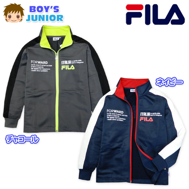 子供服 男の子 アウター フルジップ ジャケット FILA フィラ ロゴプリント 配色切替 スタンドネック 男児 ジュニア
