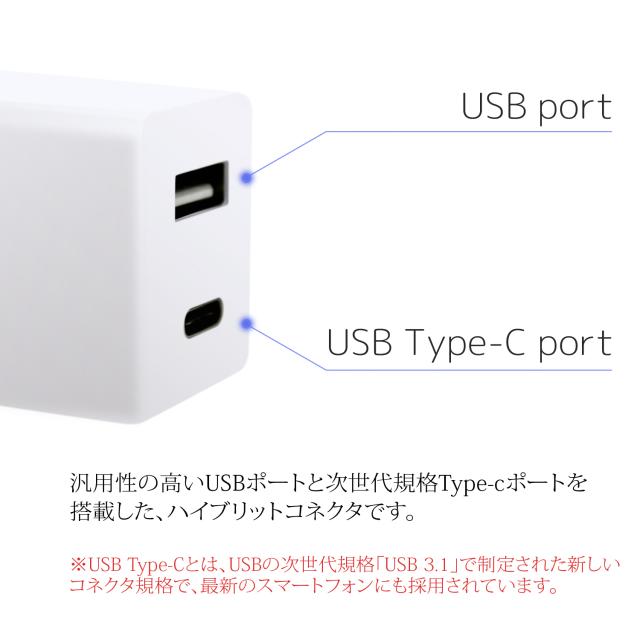 ・USBと次世代規格であるTYPE-Cに対応した2ポートタイプのキューブ型充電器です。