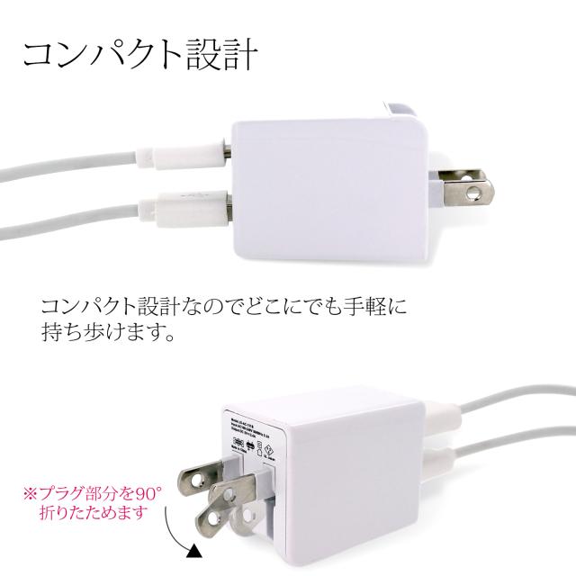 iPhone15 USB充電器 2ポート iPhone12 充電器 最大2.4A 急速充電 Type-C タイプC USB type-c出力 ACアダプター PSE認証 USB-C アイフォン12 コンパクト 折りたたみプラグ ホワイト