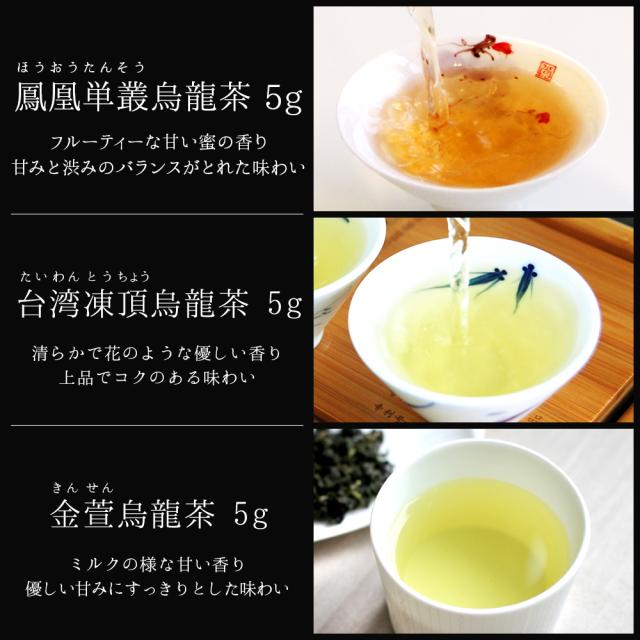 ・永春佛手烏龍茶 5g ・白芽奇蘭烏龍茶 5g ・安渓黄金桂烏龍茶 5g ・鳳凰単叢烏龍茶 5g ・台湾凍頂烏龍茶 5g ・金萱烏龍茶 5g |