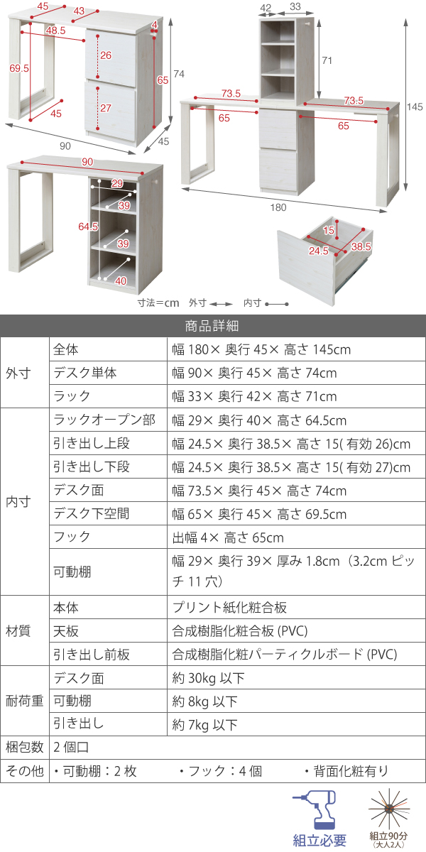 ◆デスクとラック&チェストのご注文となります。椅子は付属しません。