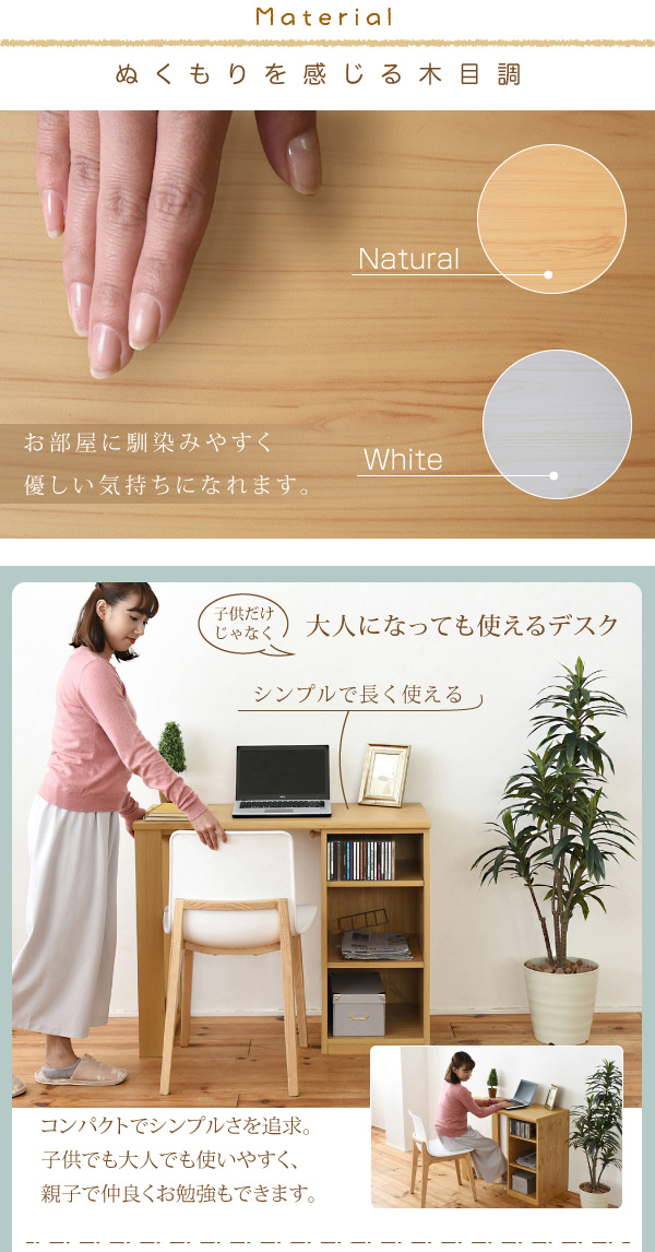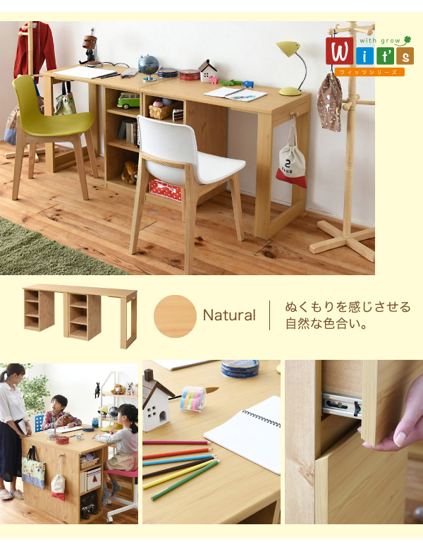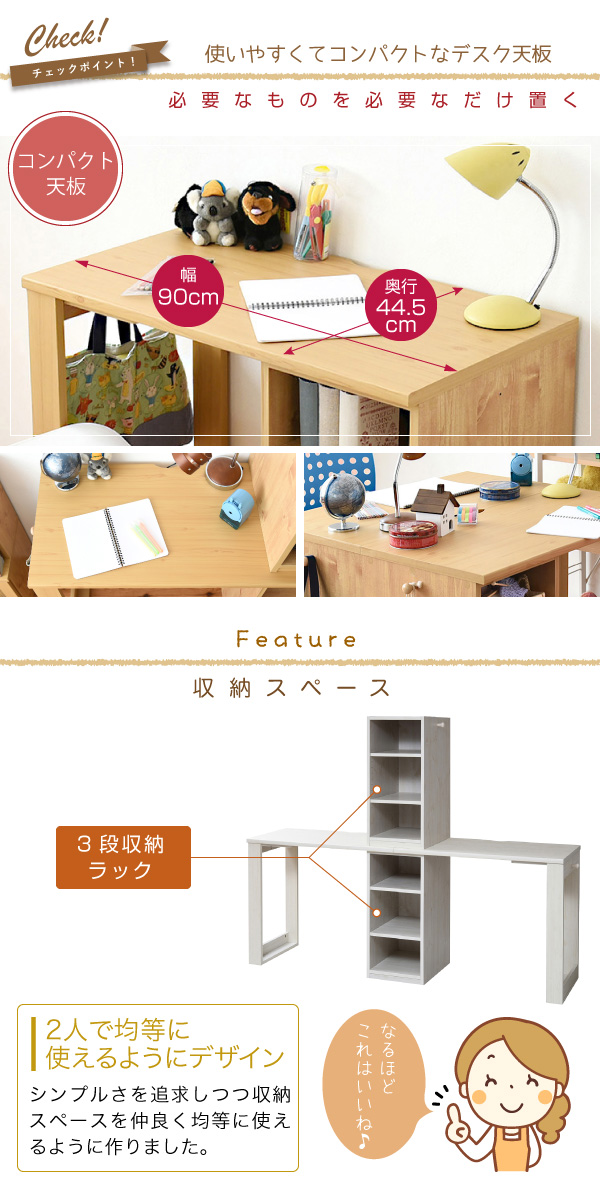 ラックの位置が変えられ、お部屋に合わせて2つのデスクをくっつなけたり離したりと様々なコーディネートが楽しめます。