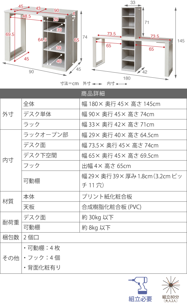 ◆デスクとラック&ラックのご注文となります。椅子は付属しません。