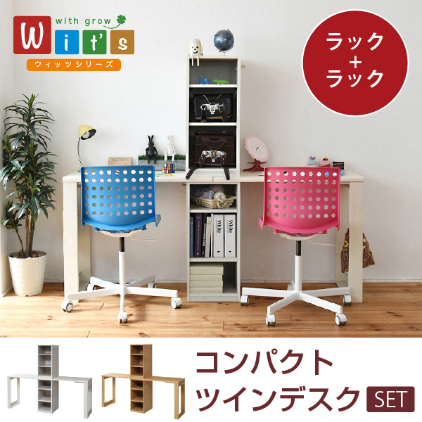 兄弟・親子で並んで使えるコンパクトでシンプルなツインデスク。