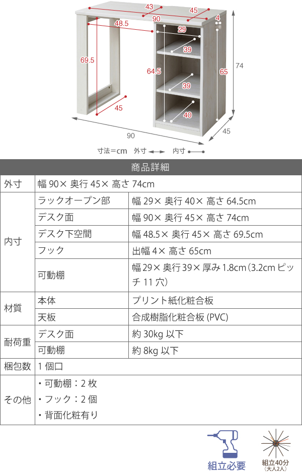 育てる デスク コンパクト デスク ラック セット 買い足し 可能 机 収納 ラック 付き 大人の勉強机 書斎机 リビングデスク 木製 省スペース パソコン 幅90