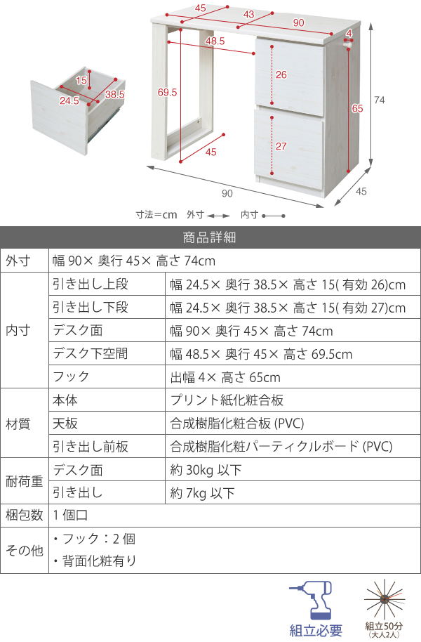 サイズ/幅90×奥行45×高さ74cm