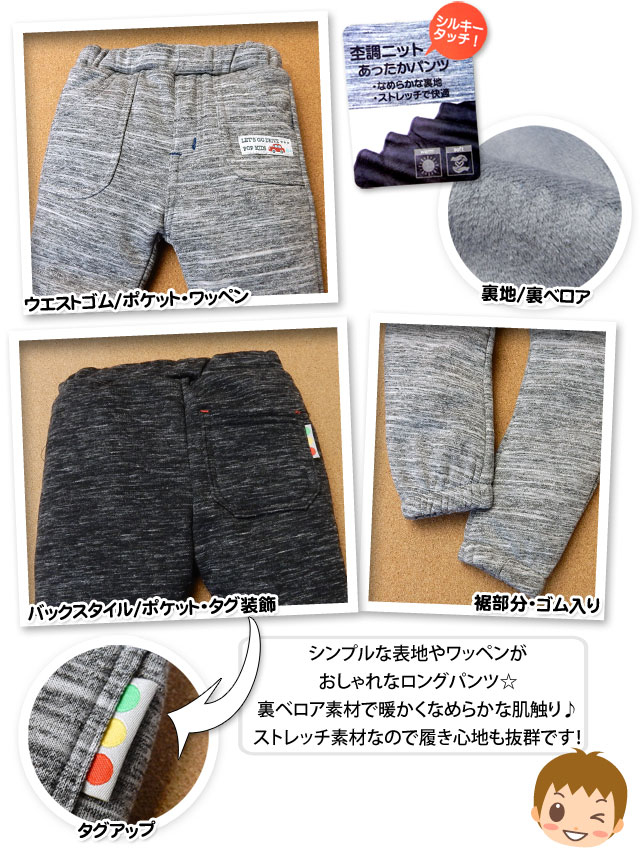【送料無料】ベビー服 男の子 ロング ジョガー パンツ 裏ベロア タグ装飾 杢ニット調 男児 ベビー【メール便対応】