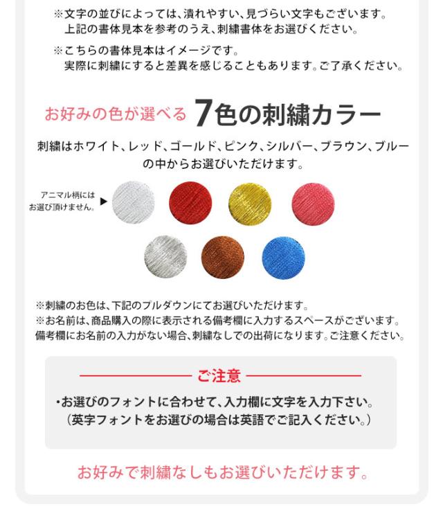 ※備考欄に記載がない場合はカラーを指定されていても刺繍なしとなります。