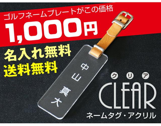 ネームプレート ゴルフ アクセサリー 1000円ぽっきり アクリルネームタグ クリア 翌々営業日出荷 ゴルフ用品 送料無料 安い 人気 名前 プレゼント 名入れ