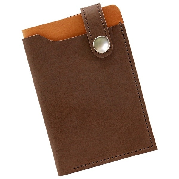 2枚の革を重ね、折り曲げてステッチを入れたシンプルなデザインです。