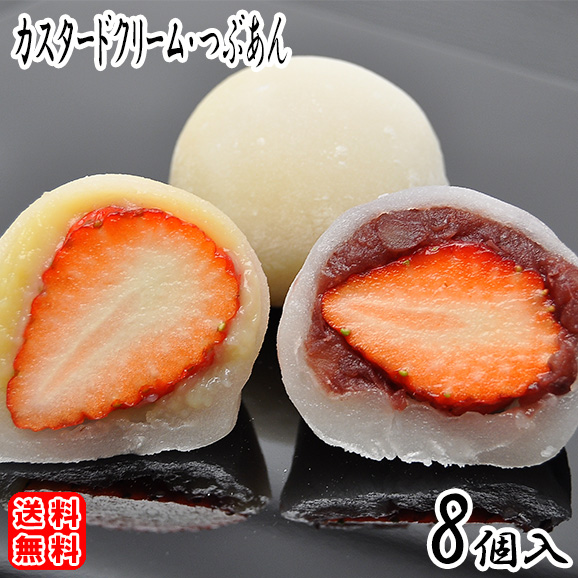 【送料無料】 2,600円 カスタード苺大福・つぶあん苺大福 合計8個入 いちご