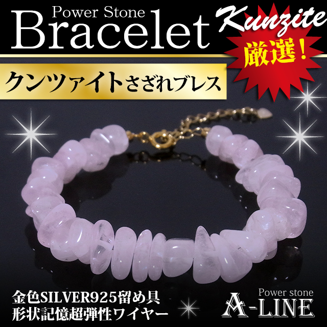 ワイヤーブレス パワーストーン クンツァイト・さざれブレス・金色SILVER925留め具使用 PW-3236
