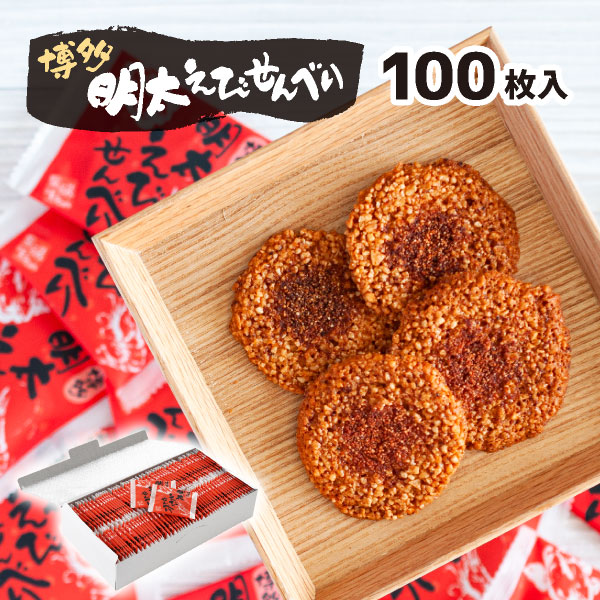 博多名物辛子明太子を贅沢に使用した明太えびせんべいを大容量の100枚入りの登場です。さらに全国送料無料にてお届けします | 福岡 お土産 お菓子 TS
