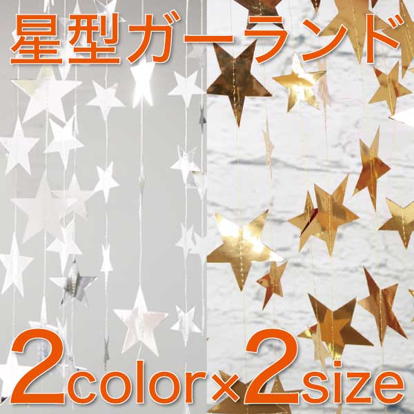 【2色×2サイズ展開】 クリスマスにぴったり♪キラキラミラー加工の星型ガーランド