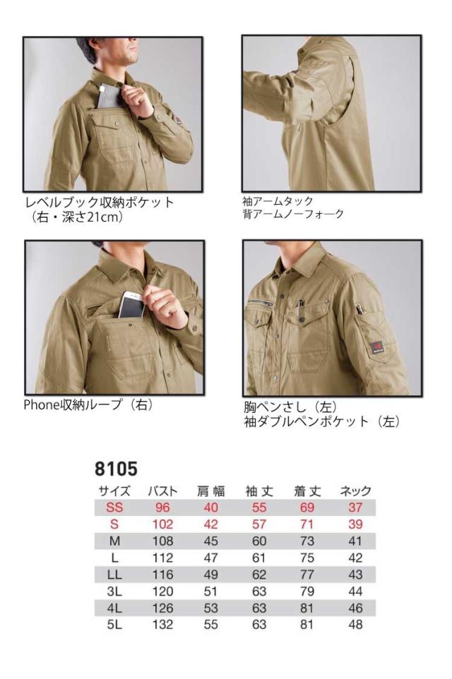 BURTLE バートル 長袖シャツ(ユニセックス) 8105 秋冬 大きいサイズ5L
