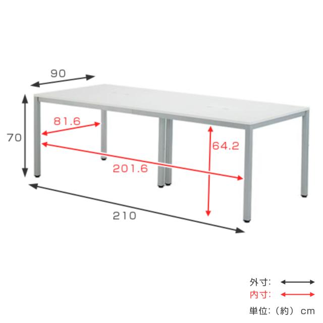ミーティングテーブル 幅210cm オフィステーブル 配線ボックス付き ( 法人限定 テーブル シンプル ベーシック デスク オフィス 会社 配線 ワークデスク ワークテーブル オフィス家具 事務机 事務用 )