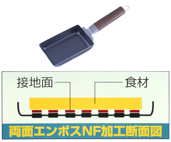 表面に無数の凹凸を浮き立たせた特殊加工金属を施した鉄製の卵焼きパンです。鍋外面の凹凸により熱を受ける面積が増え熱効率がアップします。