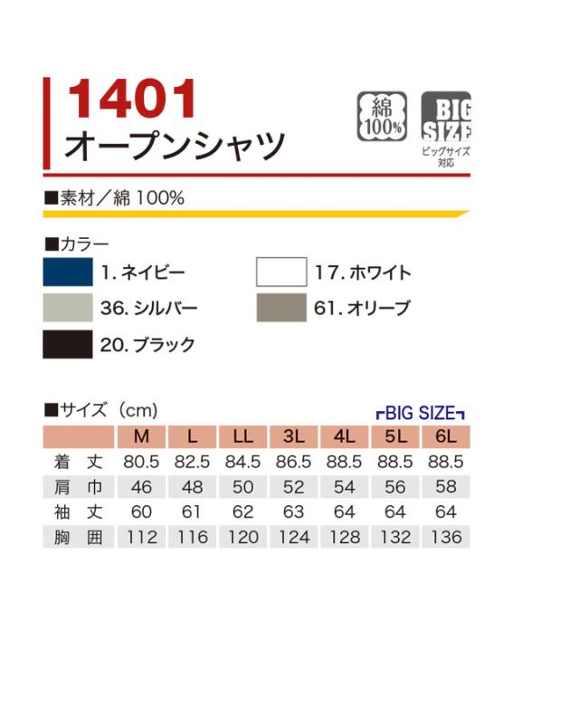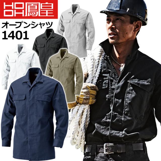 鳳皇 1401 オープンシャツ 【村上被服】綿100% コットン 胸ポケット付き 【秋冬】 長袖 作業服 作業着
