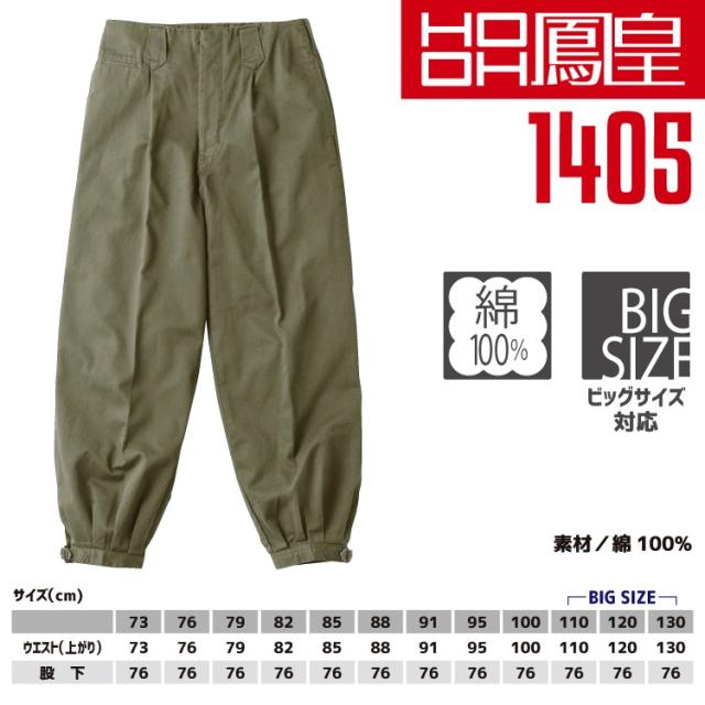 鳳皇 1405 ニッカ 【73-100】綿100%【村上被服】【秋冬】ニッカポッカ ボトム ズボン 作業服 作業着