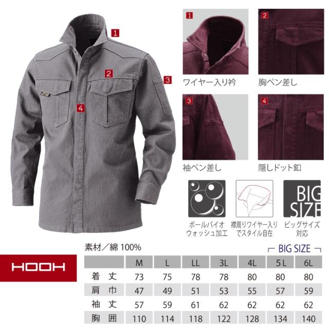 鳳皇 6407 長袖シャツ 【村上被服】綿100% 厚手 ボールバイオウォッシュ加工 襟ワイヤー入り【秋冬】 長袖 作業服 作業着