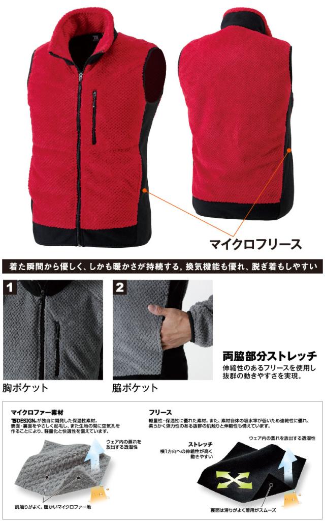 TSデザイン マイクロファーベスト 4238 軽量 保温性 フリース ストレッチ ジップアップ 透湿 防寒服 防寒着 作業服 作業着