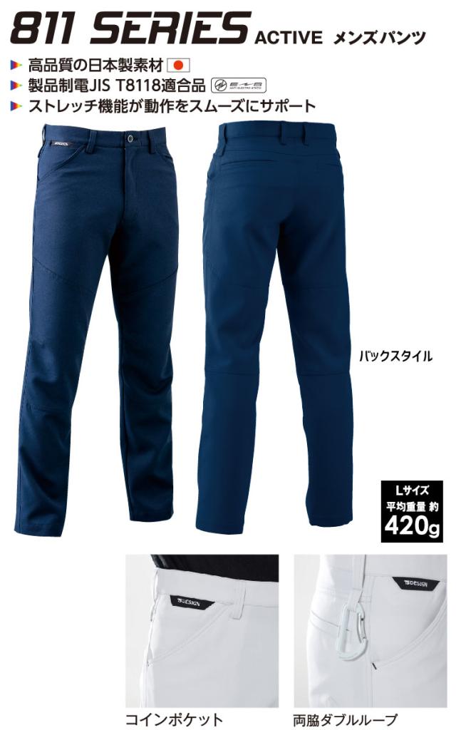 TSデザイン 藤和 TS-DESIGN ACTIVE メンズパンツ 8112 男性用 ズボン ストレッチ 日本製素材 制電 帯電防止 作業服 作業着811シリーズ