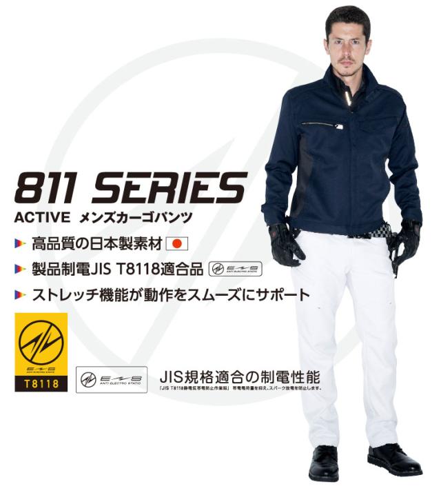 TSデザイン 藤和 TS-DESIGN ACTIVEメンズカーゴパンツ 8114 男性用 ズボン ストレッチ 日本製素材 制電 帯電防止 作業服 作業着811シリーズ