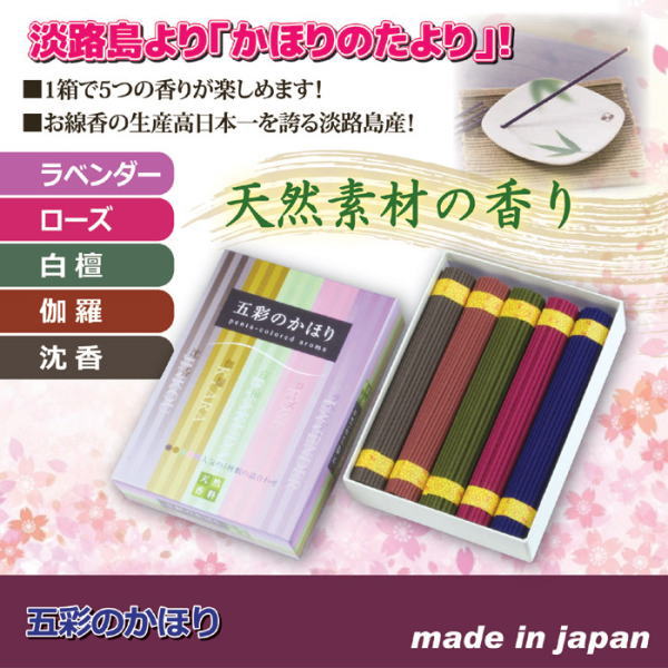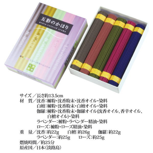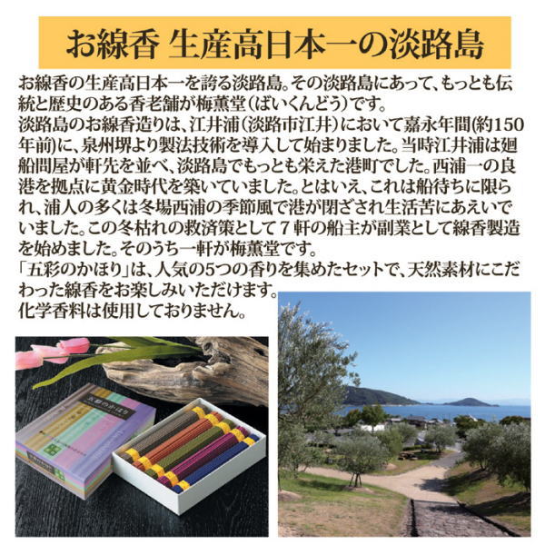 五彩のかほり お線香 線香 贈答用 セット 淡路島産 香り 老舗 梅薫堂 ばいくんどう 化学香料不使用 天然素材 仏具 おすすめ 人気 通販 販売