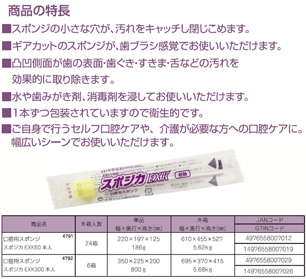 口腔用スポンジ スポジカEXK 紙軸 300本入り(EXK-300) 平和メディック