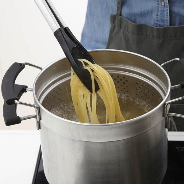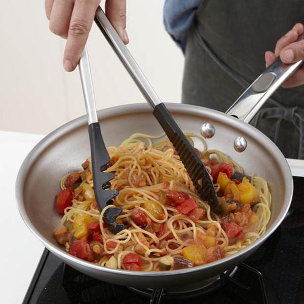 フォーク状の先端はパスタや焼きそばなどの麺類もしっかりと掴むことが出来ます。左右の形状が異なるので、どんな食材でもがっちり掴みます。