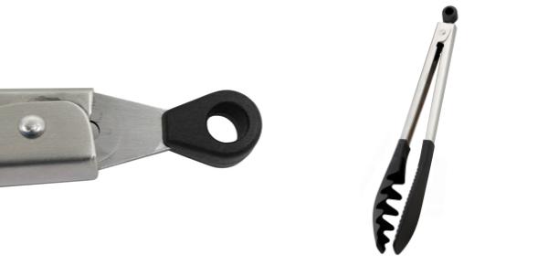 上部のつまみを引き上げることでトングを閉じられる、便利なワンタッチのロック付きです。トングを閉じた状態での収納が可能なので場所を取りません。