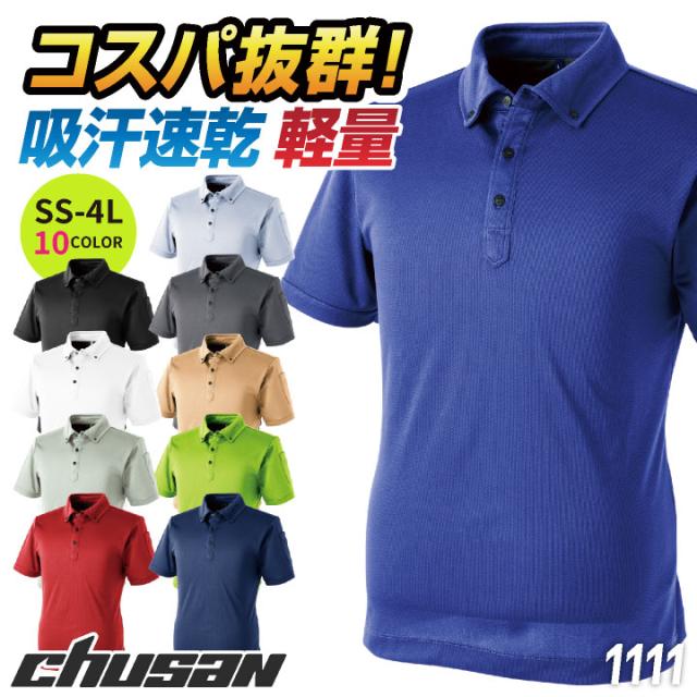 半袖ボタンダウンポロシャツ 作業服 作業着 作業シャツ 吸汗速乾 chusan 半袖 ポロシャツ 春夏 cs-1111
