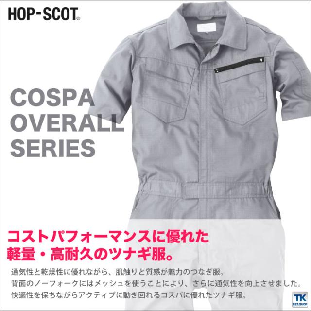 つなぎ メンズ 半袖つなぎ リップストップ 作業服 作業着 オールインワン 作業つなぎ HOP SCOT chusan 春夏 cs-9211